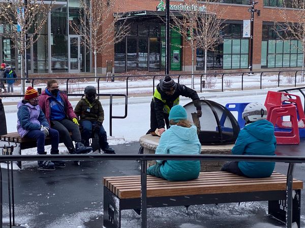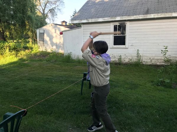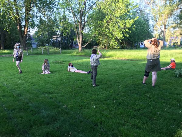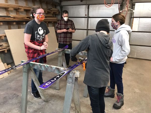 Scouts from Troop 1401 learn how hard it is to walk in the same pair of skis! They quickly figure it out